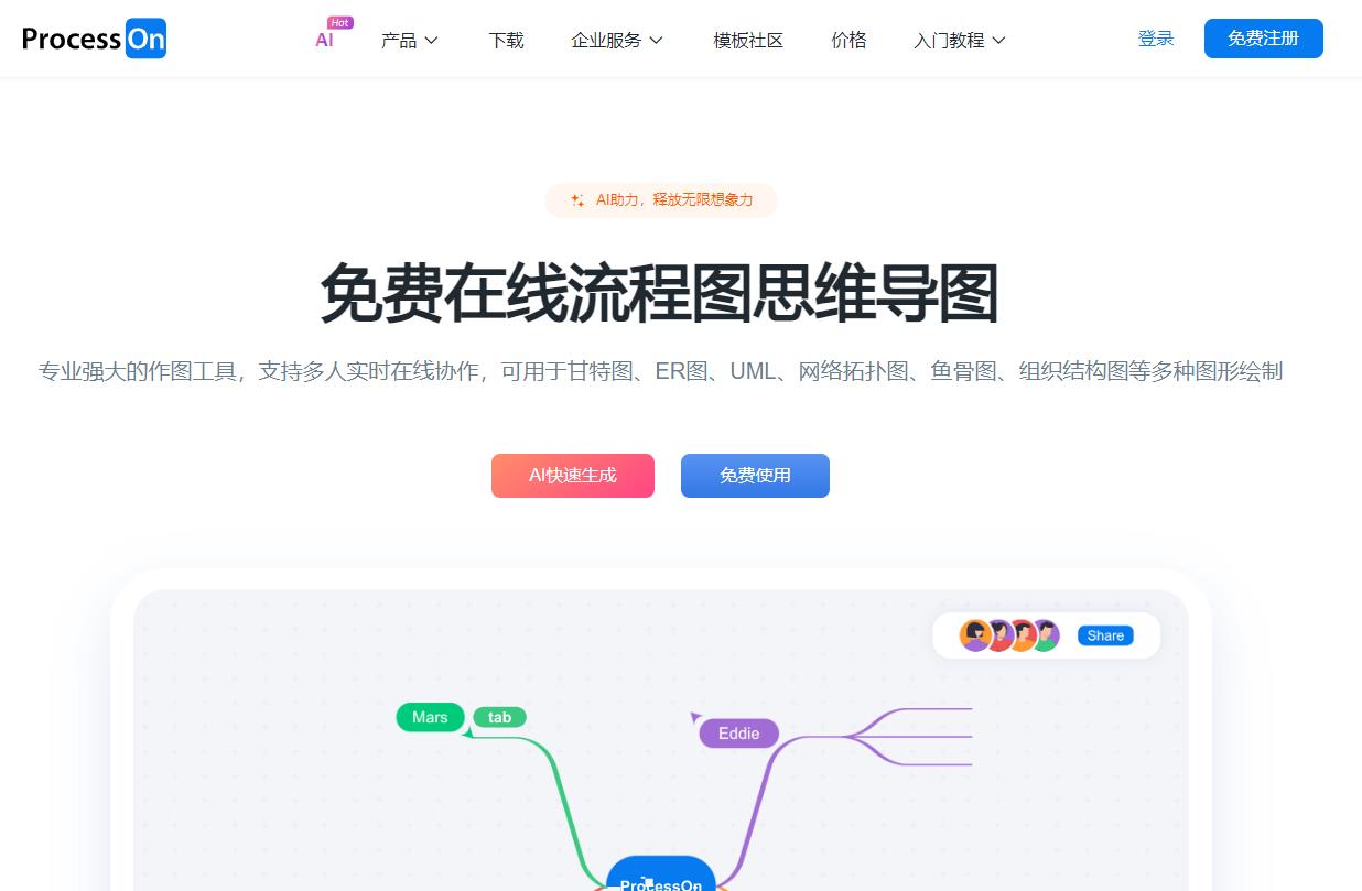 ProcessOn是一款专业在线作图工具和知识分享社区,提供AI生成思维导图流程图。支持思维导图、流程图、组织结构图、网络拓扑图、鱼骨图、UML图等多种图形,同时可实现人与人之间的实时协作和共享,提升团队工作效率。